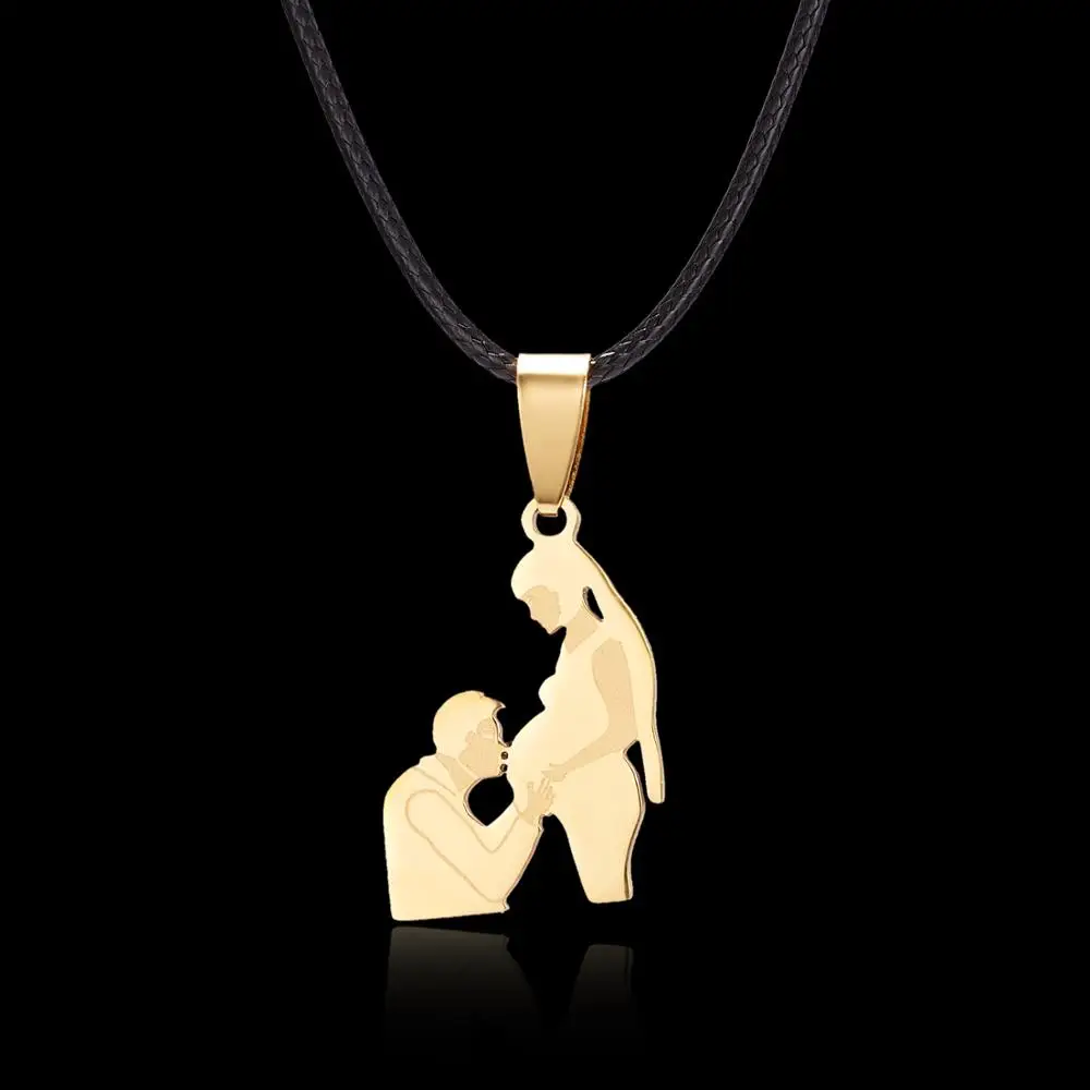 Mom Dad Baby Stainless Steel Necklace Women Gold Color Statement Necklace Mother's Day Gift Jewelry Leather Chain Charm Pendant