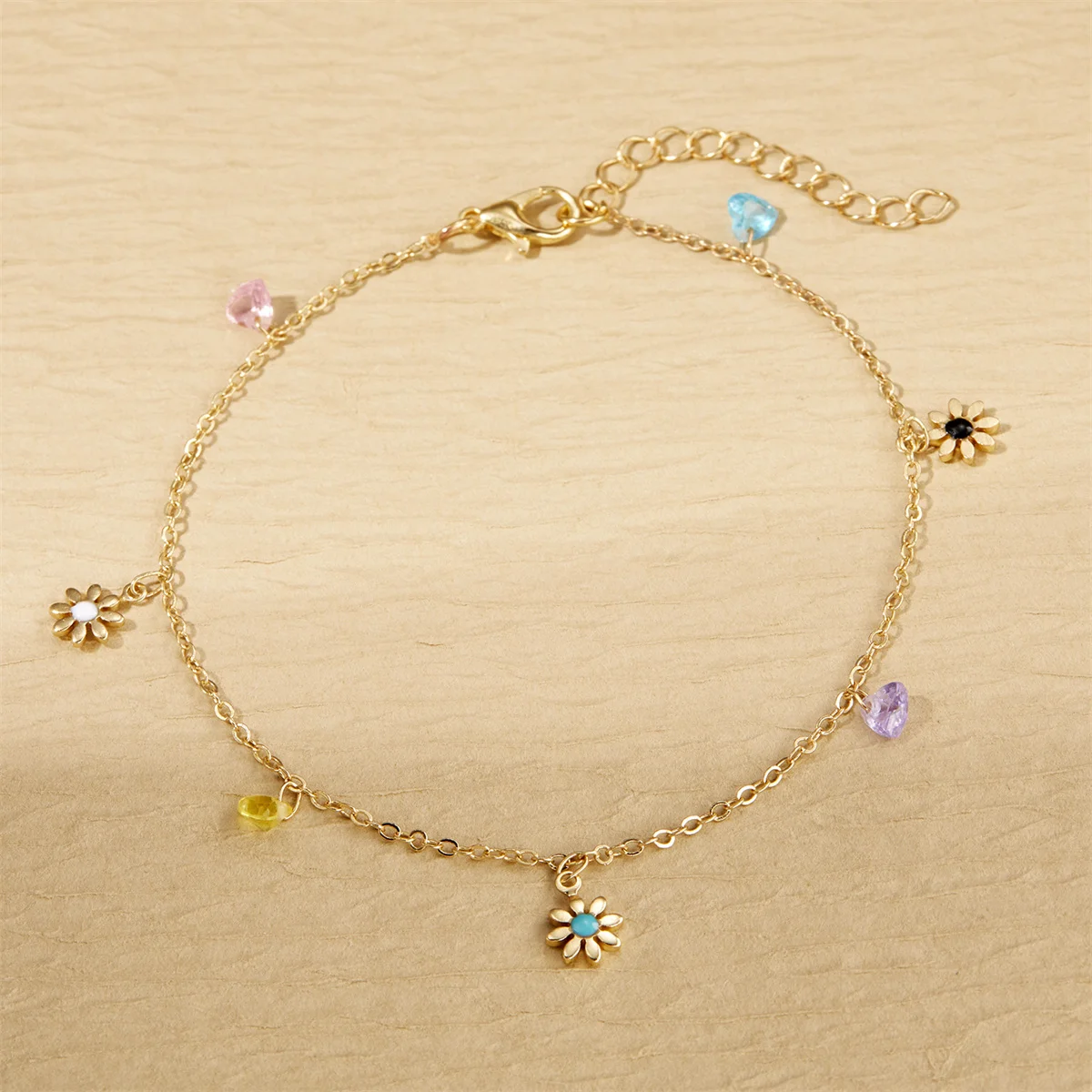 Cute Daisy Flower Crystal Heart Anklets For Women Handmade Boho Sunflower Foot Chain Floral Ankle Bracelet Summer Beach Jewelry