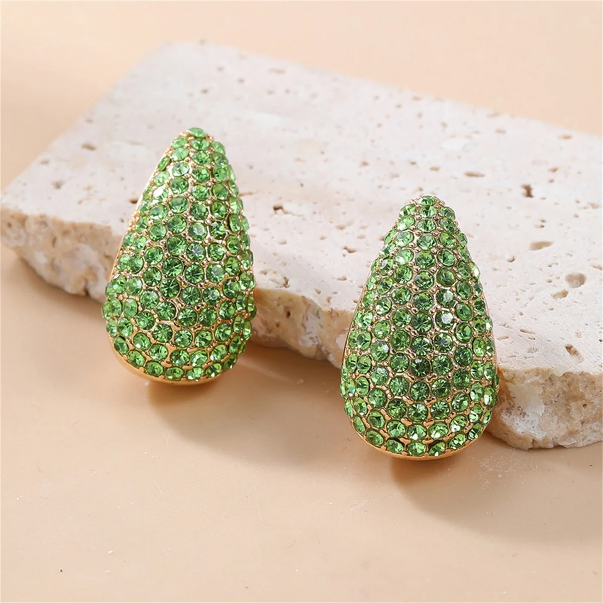Vintage Colorful Rhinestone Waterdrop Shaped Stud Earrings For Women Luxury Chunky Teardrop Earrings Punk Y2K Fashion Jewelry