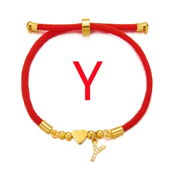 New Stainless Steel Gold Color Heart A-Z Initial Letter Bracelet Men Luck Red Rope Charm Bracelet For Women Men Jewelry Gift