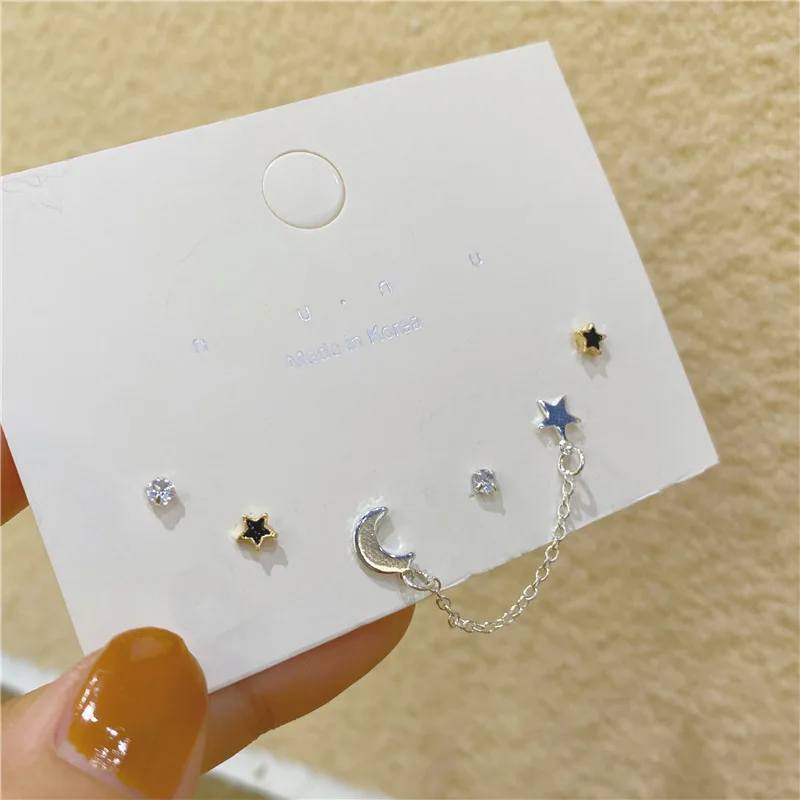 Fashion Moon Stars Cute Animal Cat Asymmetric Earring Sweet Flowers Kitten Fan Tassel Pendant Earrings Girl Temperament Jewelry