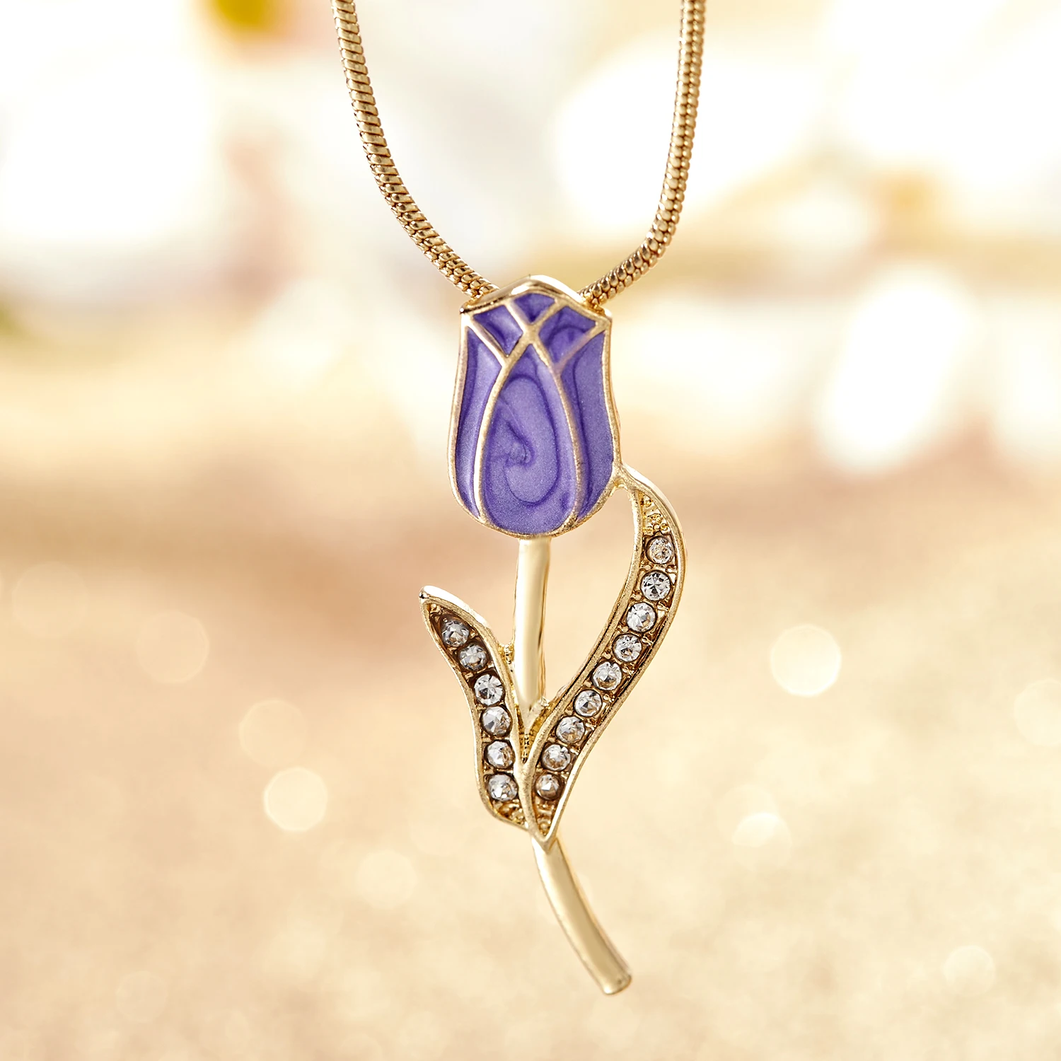 Fashion Unique Design Elegant Delicate Enamel Tulip Necklace Light Luxury Clavicle Chain For Women Trendy Jewelry Party Gift