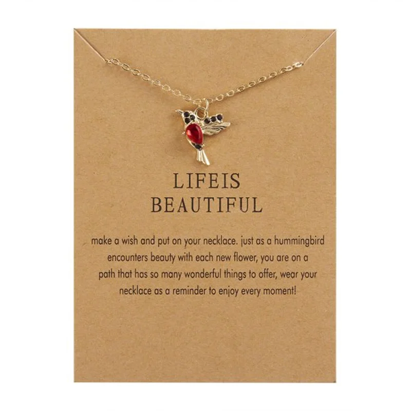 New Trendy Alloy Cute Elegant Wish Luck Hummingbird Butterfly Pendant Necklace for Women Fashion Jewelry Wholesale Dropshipping