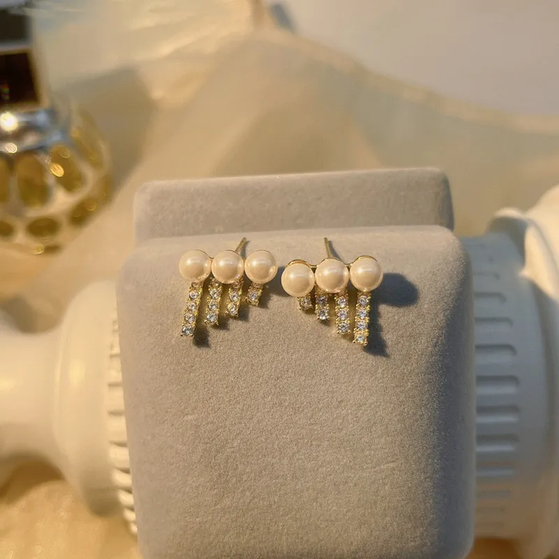 New Design Tassel Pearl Stud Earrings For Women Elegant Pearl Ear Row Earrings Geometric Star Zircon Earrings Sexy Party Jewelry