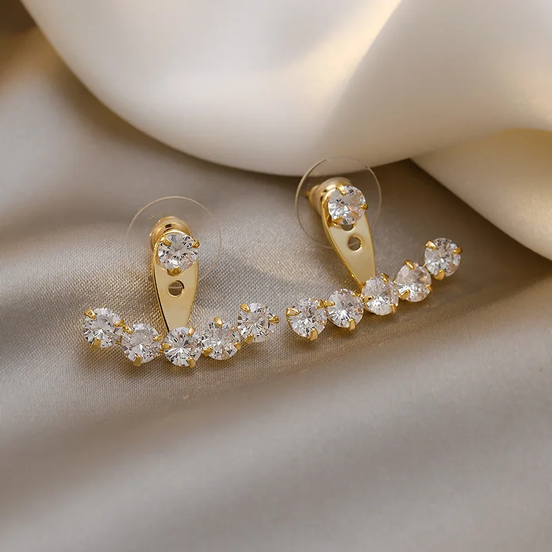 Korean Fashion Simple Claw Stud Earrings for Women Pearl Shiny Crystal Zircon Gold Color Earrings Party Wedding Jewelry Gift
