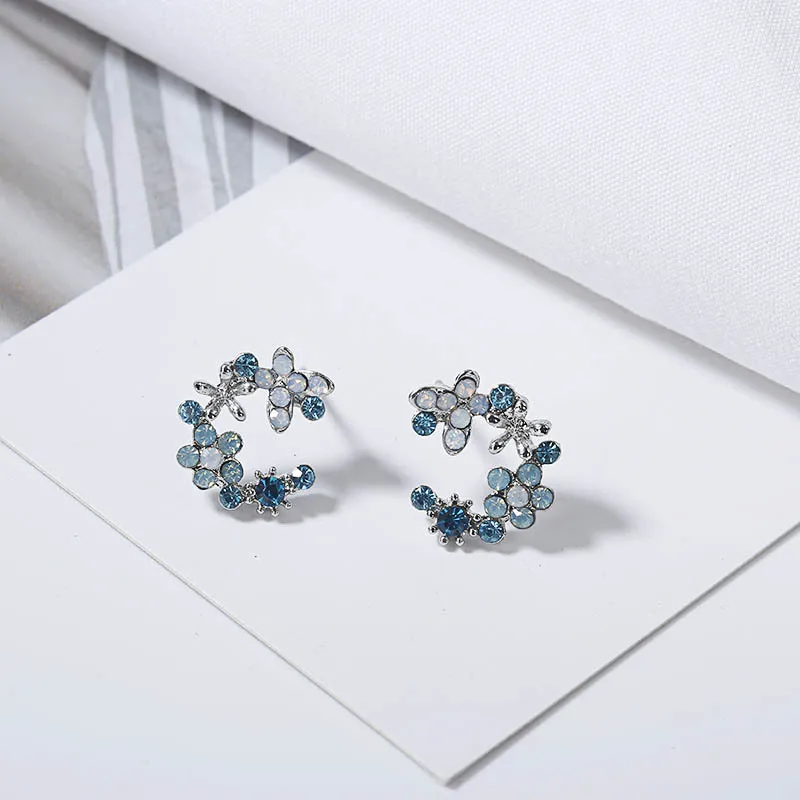 Korean New Design Fashion Colorful Rhinestone Moon Heart Flower Garland Stud Earrings Jewelry Women Exquisite Romantic Earrings