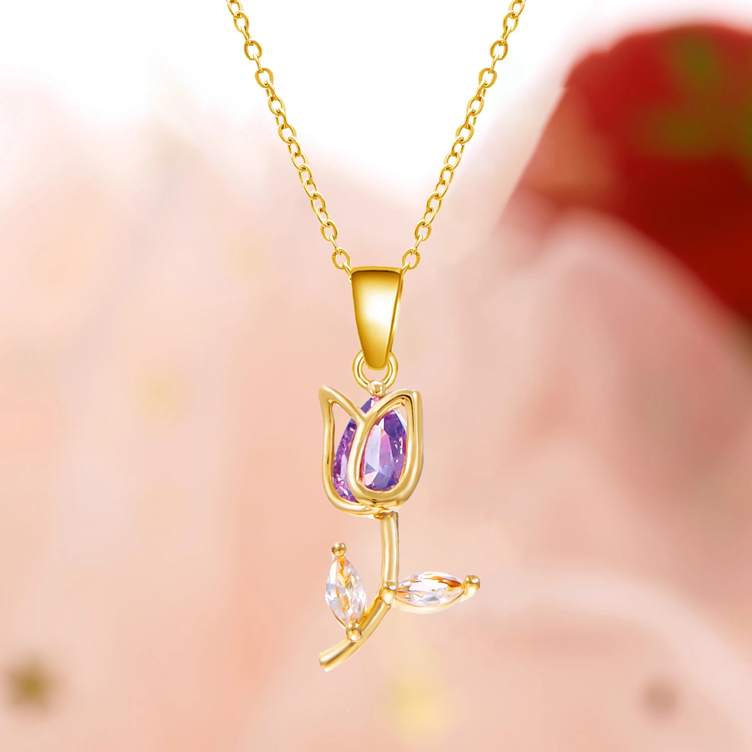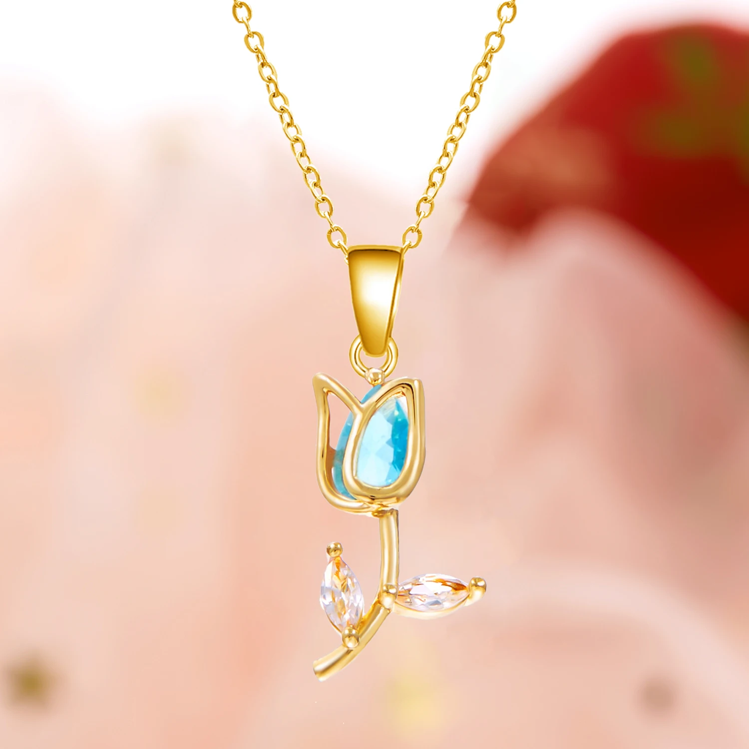Elegant Sweet Colorful Zircon Tulip Pendant Necklace For Women Stainless Steel Flower Rhinestone Choker Wedding Party Jewelry