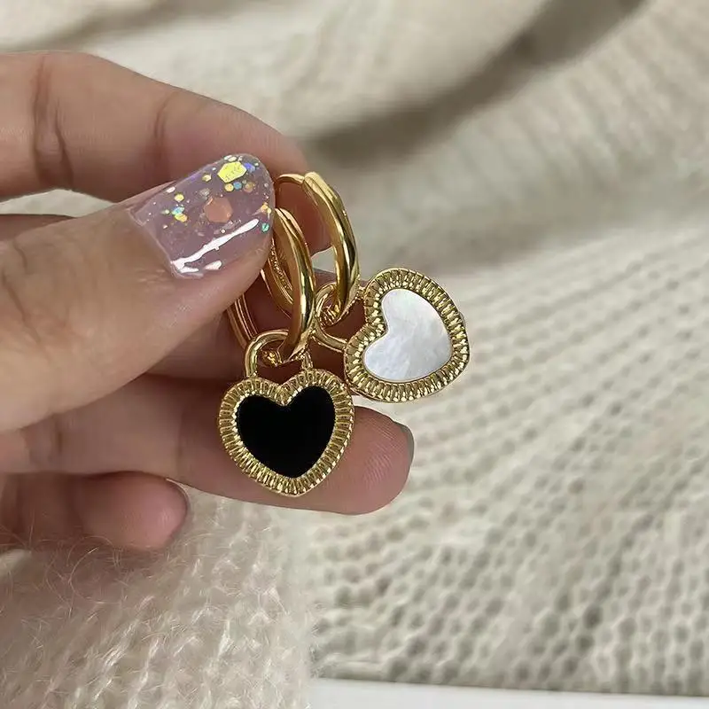 Korean Fashion Enamel Love Heart Hoop Earrings 2023 New Trendy Jewelry For Women Sexy Elegant Hollow Metal Earrings