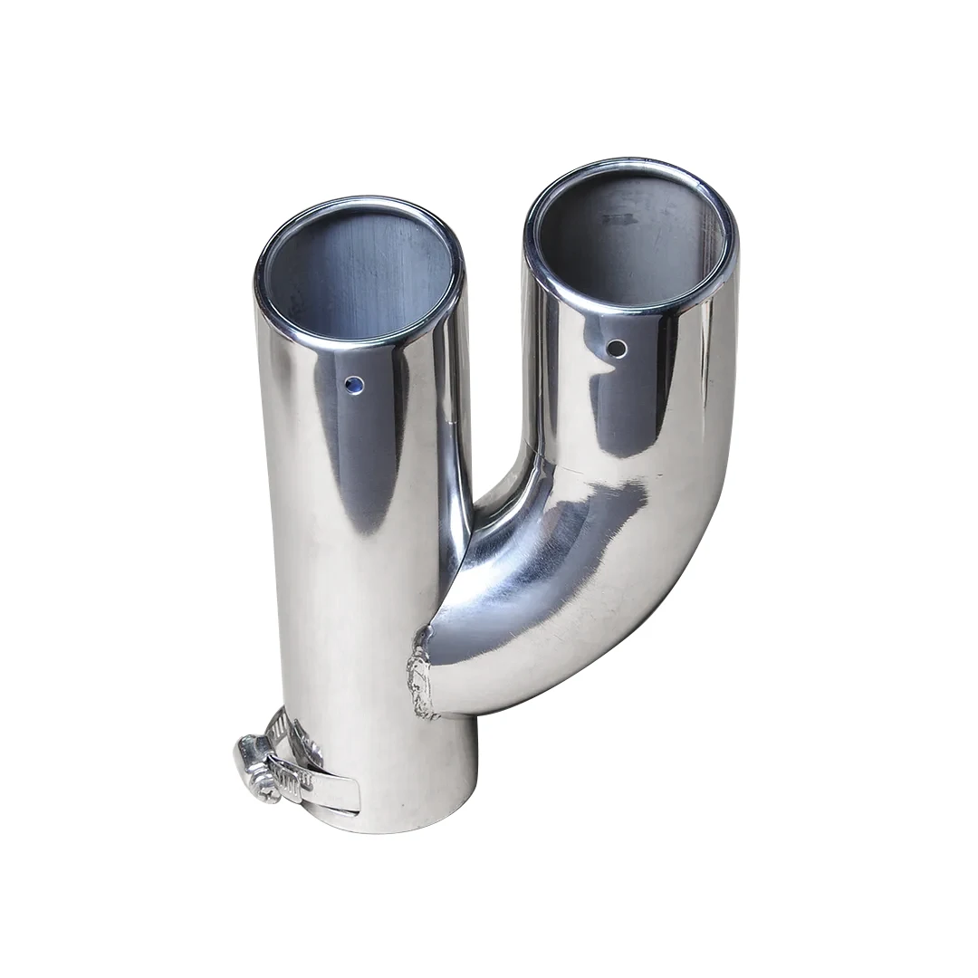Universal Car Chrome Dual Exhaust Muffler Tail Pipe Tip Silencer Inlet 64mm [QP1049]