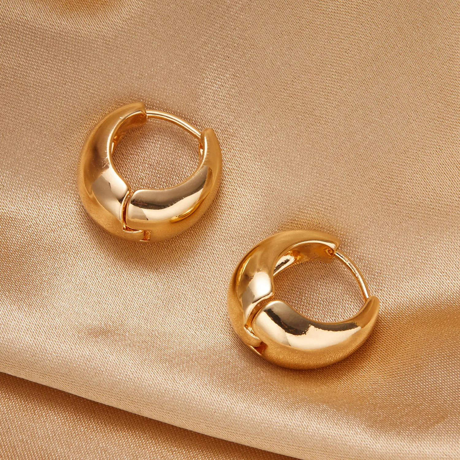 Trendy Simple Gold Color Geometric Metal Hoop Earrings For Women Vintage Punk Round Circle Earrings Party Jewelry Gifts