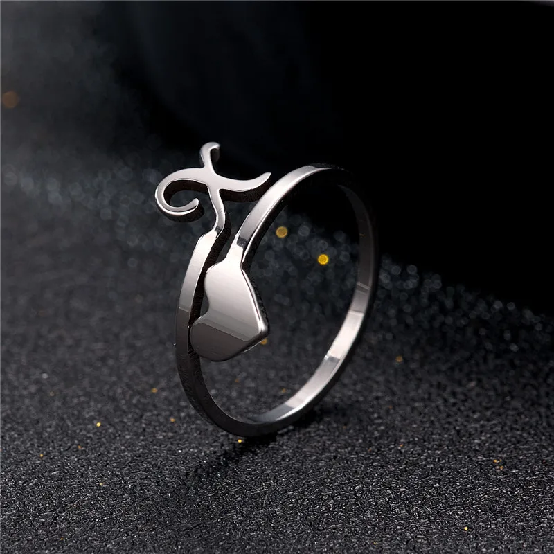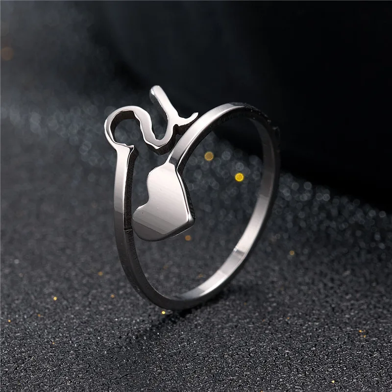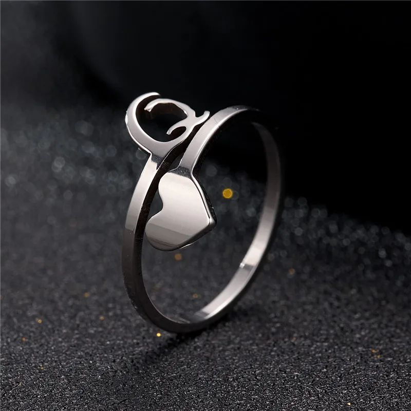 Stainless Steel A-Z Rings Initial Letters Heart Valentine Rings Women Fashion Jewerly Adjustable