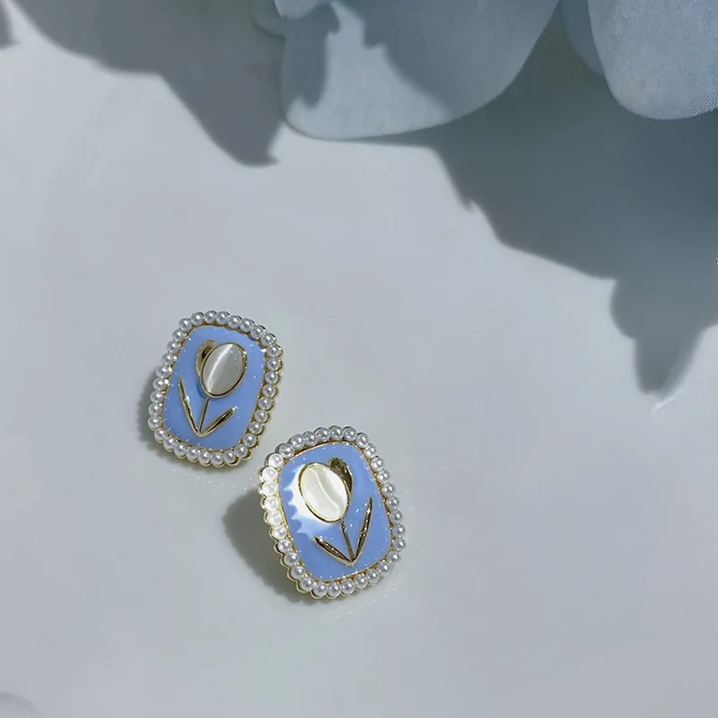 Elegant Colorful Tulip Pendant Necklace for Women Fashion Vintage Oil Drip Flower Clavicle Chain Choker Aesthetic Jewelry Gift