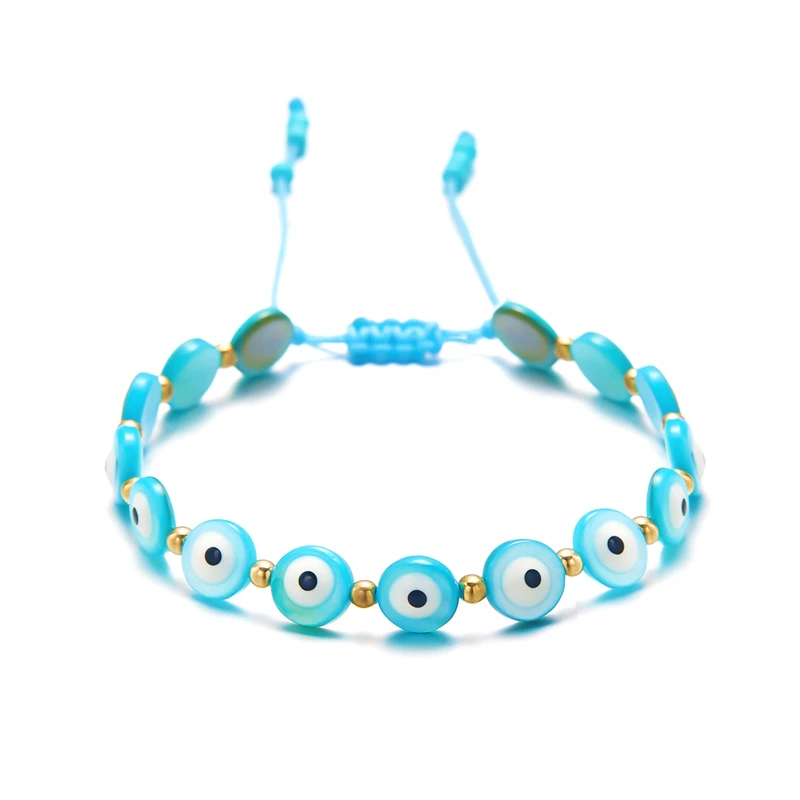 8MM Evil Eye Bracelet for Women Fashion Multiple Eyes Round Beads Beaded Bracelet Handmade Braided Lucky Turkish Jewellery Gift