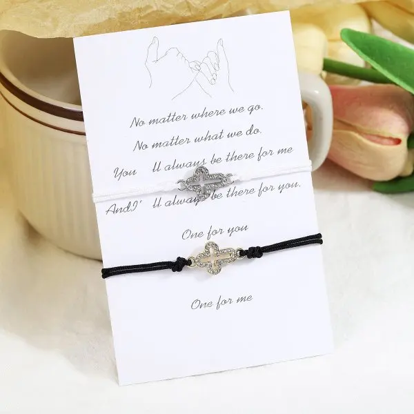 2pcs/set Cross Lucky Bracelet for Men Women Handmade Braided Rope Charm Couple Paper Card Bracelet Jewellery Friendship Gift