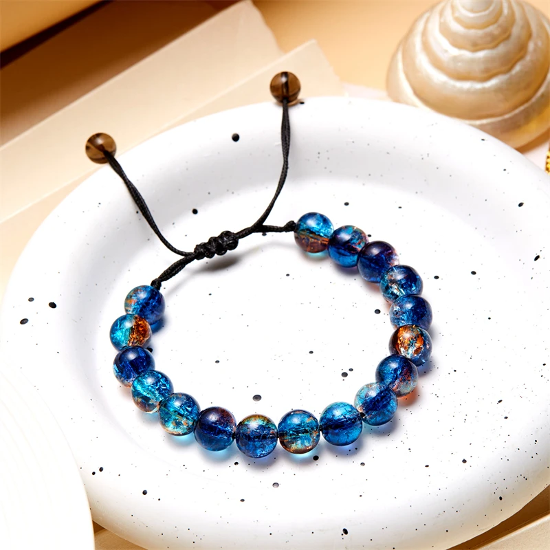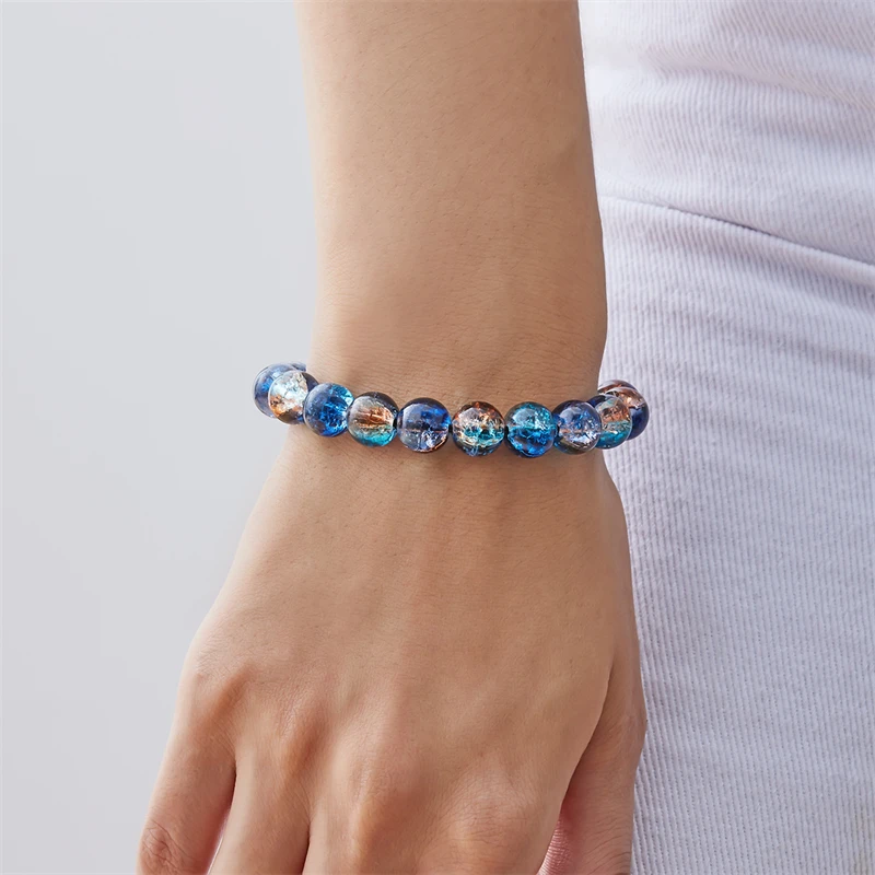 Colorful Glass Bead Bracelet for Men 10mm Round Beads Bracelet Set Wrist Chain Women Men Jewelry Gift New Bracelets Accessories