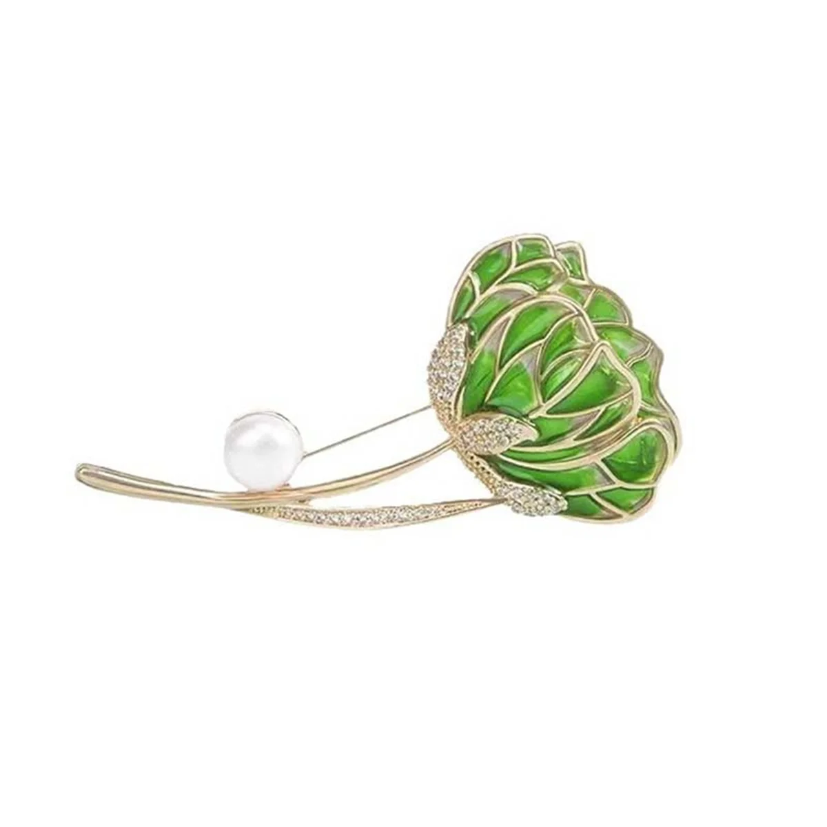 Rinhoo Red Enamel Tulip Flower Brooches For Women Elegant Green Leaf Rose Floral Lapel Pins Bouquet Plant Badge Wedding Jewelry