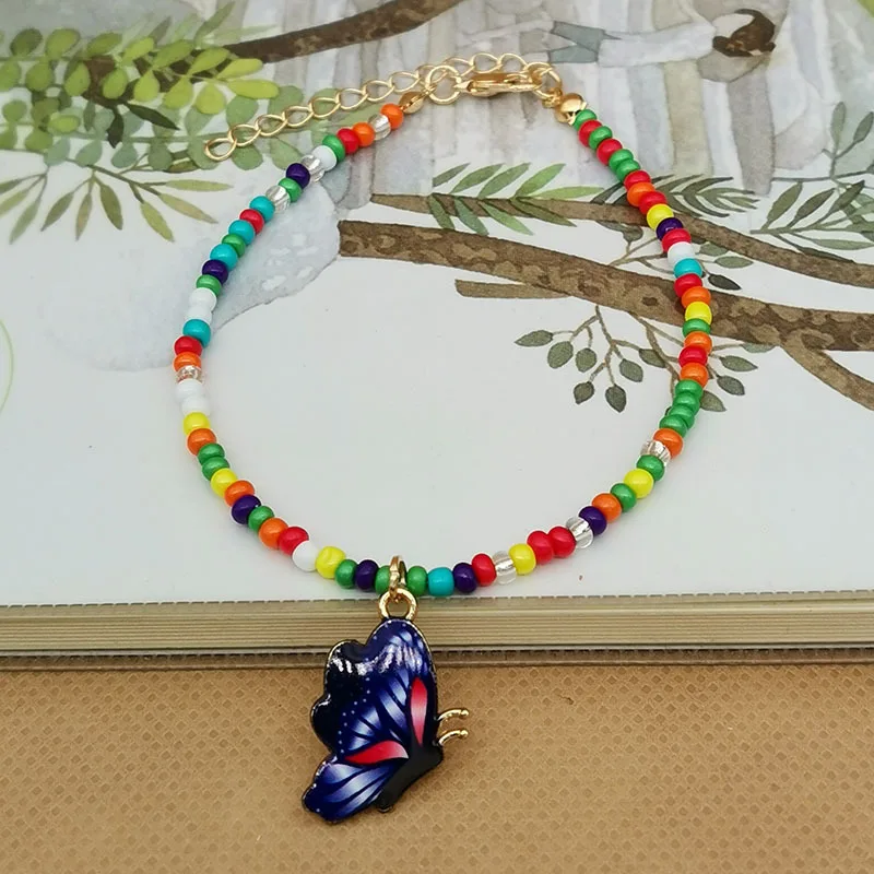 Bohemia Summer Colorful Rice Bead Butterfly Bracelet For Women Boho Ocean Barefoot Beach Leg Bracelet Anklet Female Jewelry Gift
