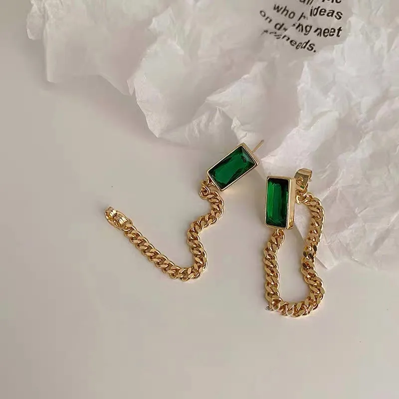 Unique Design Green Geometric Square Crystal Drop Earring Trendy Gold Plated Ear Line 2021 New Fashion Party Gift
