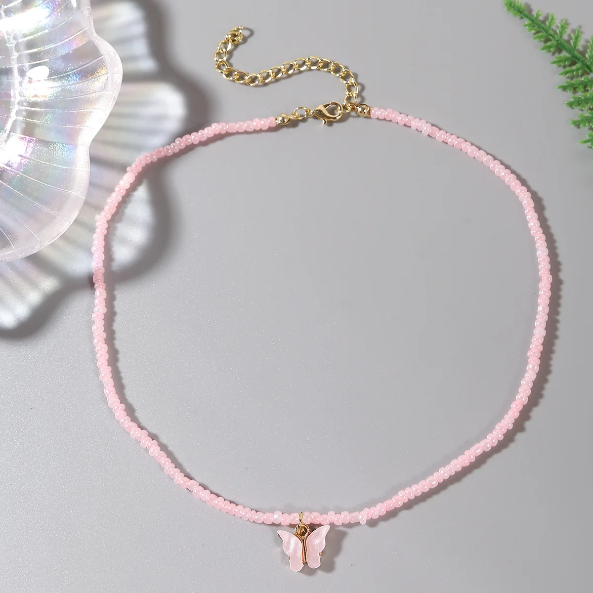 Bohemian Cute Butterfly Pendant Necklace for Women Girls Colorful Beaded Choker Necklaces 2022 Summer Fashion Jewelry Gift