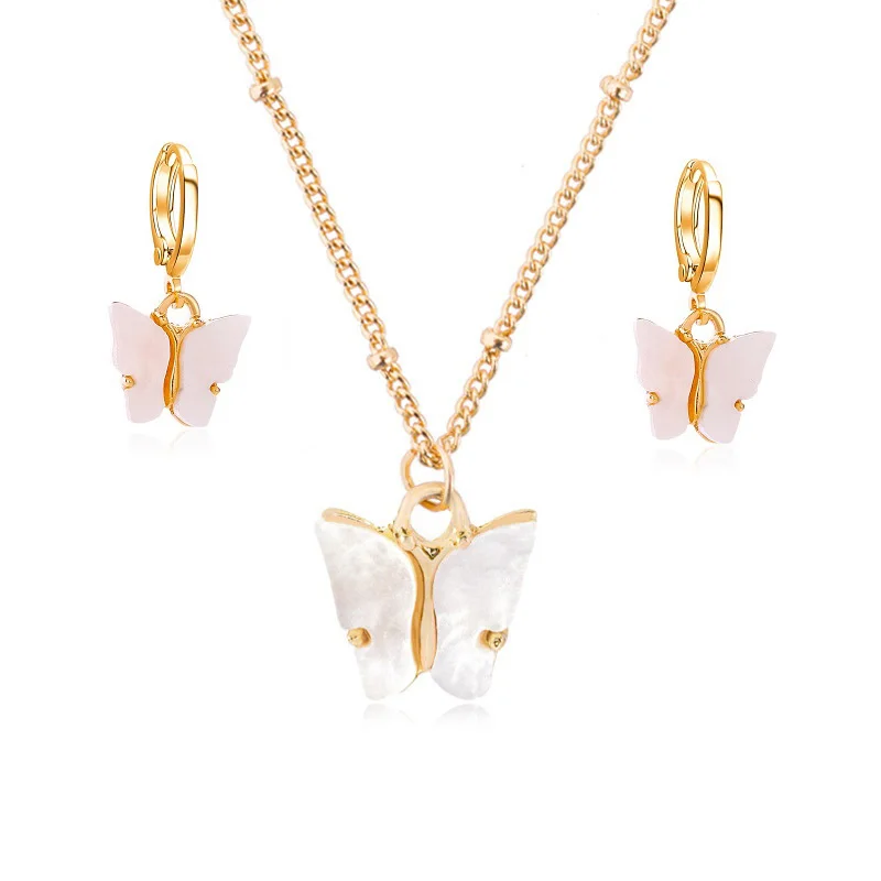 Acrylic Butterfly Earrings Pendant Necklaces Combination Set Japan and South Korea Sweet Style Alloy Chain Butterfly Jewelry Set
