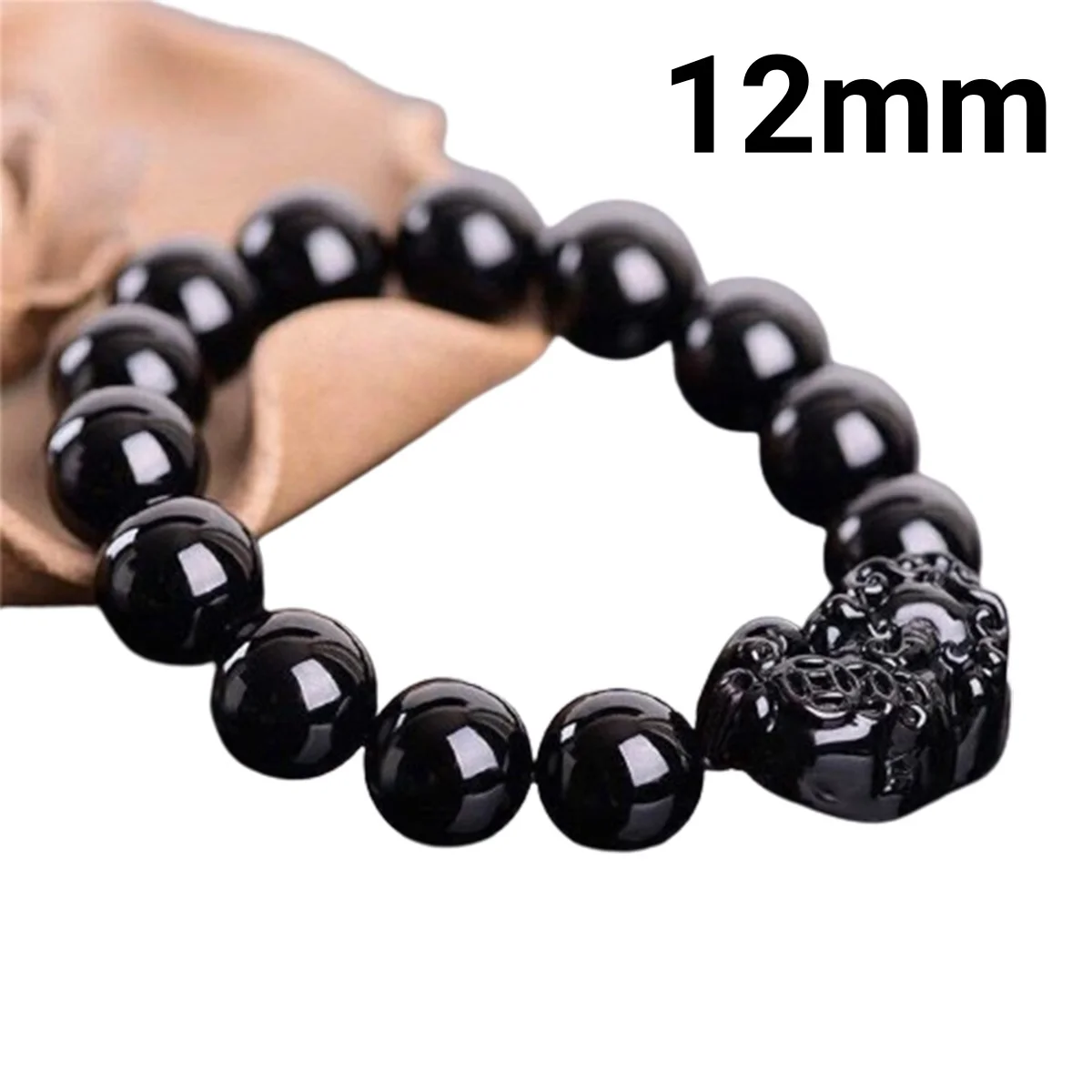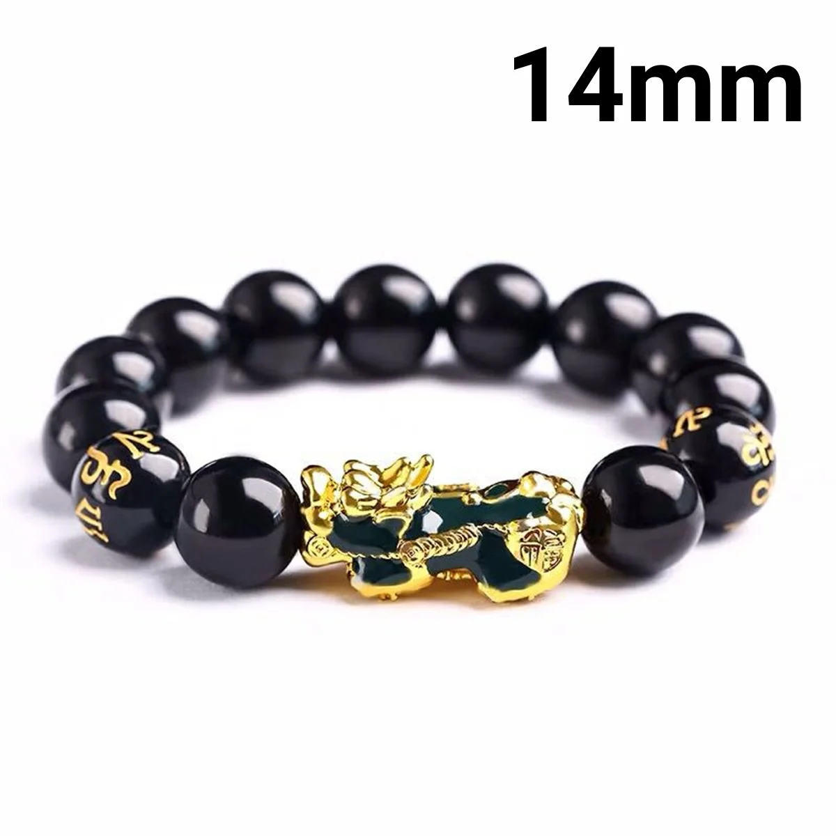 Feng Shui Obsidian Stone Beads Bracelet Wristband Gold Color Black Pixiu Wealth Good Luck Women Bracelet Men Women Unisex