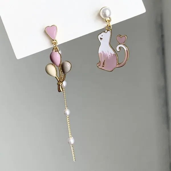 Korean Style Asymmetric Cute Animal Dangle Earrings For Women Flower Moon Star Kitten Bunny Balloon Earring Party Jewelry Gifts
