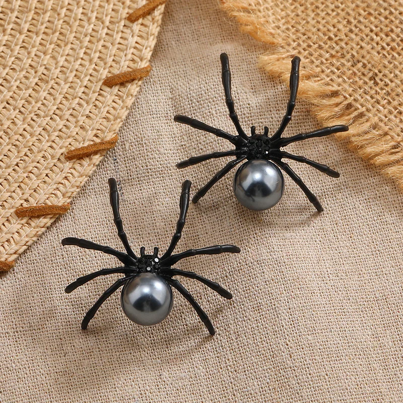 Exaggerated Retro Punk Black Spider Stud Earrings for Women Personality Design Insect Animal Earrings Party Festival Ear Jewelry