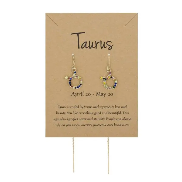 Colorful Zircon 12 Constellations Long Ear Line Earring For Women Zodiac Dangle Earring Daily Casual Accessories Birthday Gift