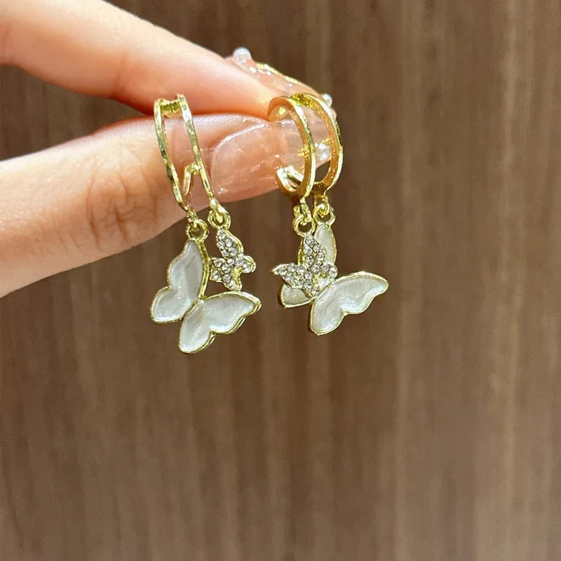 Delicate Zircon Pearl Butterfly Stud Earrings For Women Korean New Crystal Hollow Asymmetrical Earring Sweet Temperament Jewelry