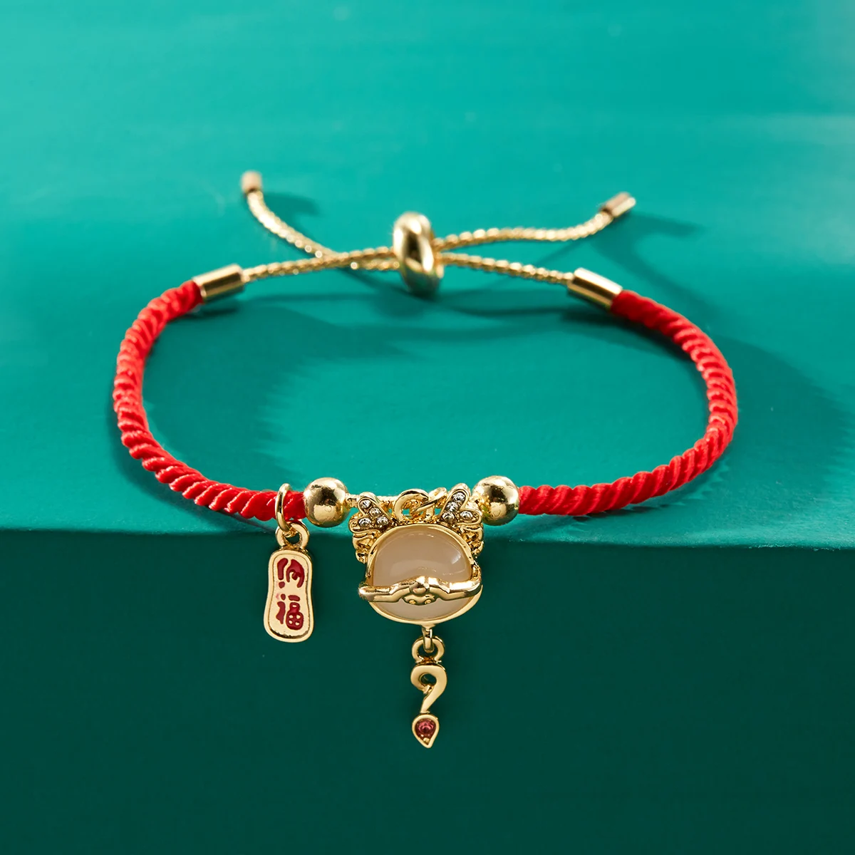 Lucky Nafu Pendant Bracelets for Women Creative Ethnic Chinese Dragon Red Rope Bracelets 2024 New Year Amulet Jewelry Gifts