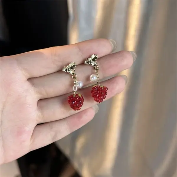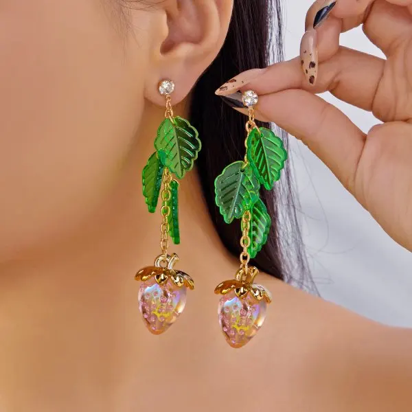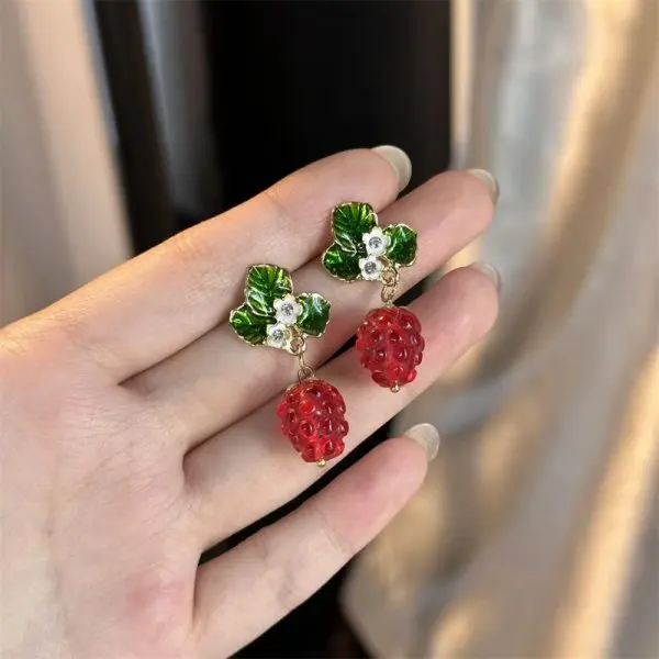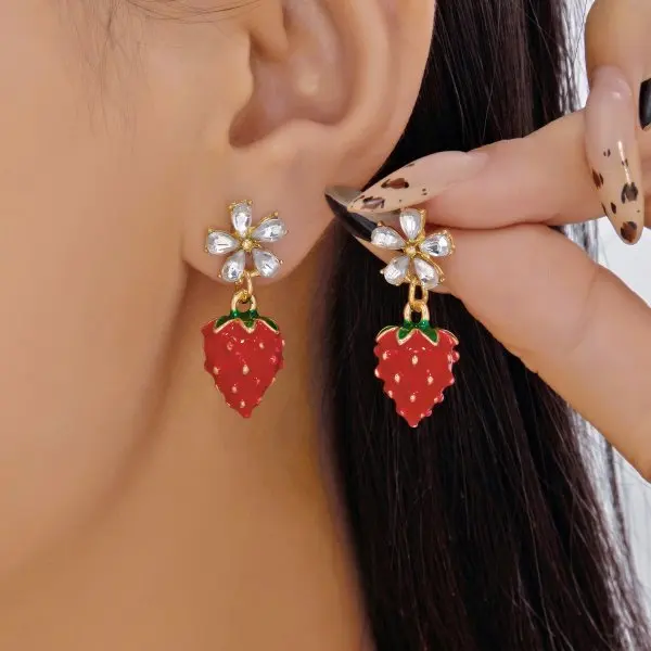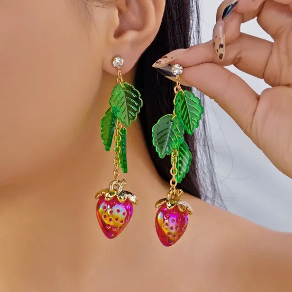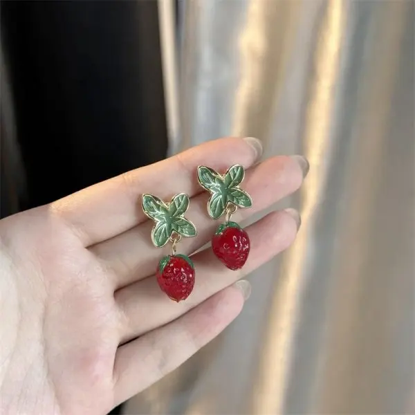 Korean Style Red Strawberry Dangle Earrings For Women Cute Rabbit Flower Peach Blossom Leaf Bamboo Earring Girls Party Jewelry