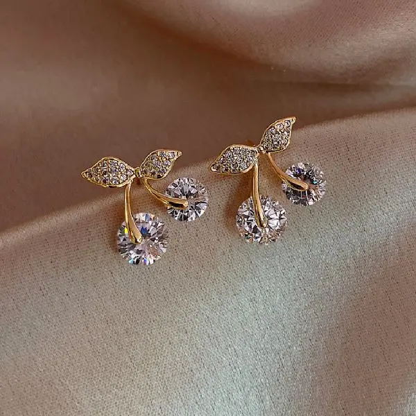 Exquisite Leaves Crystal Flower Stud Earrings For Women AAA Zircon Rose Butterfly Tassel Earring Bride Wedding Party Jewelry