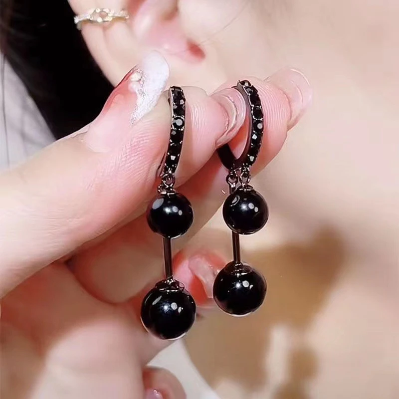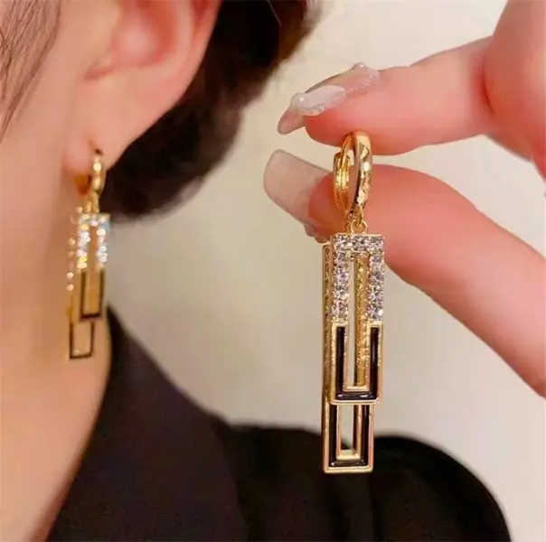 Luxury Trend Black Color Double Layer Earrings For Women Korean Crystal Zircon Geometric Earring Bride Wedding Statement Jewelry