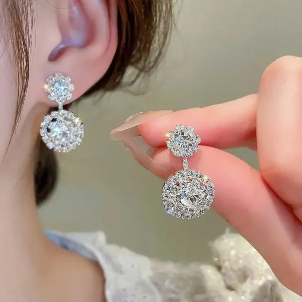 Korean Fashion Zircon Water Drop Earrings for Women Shiny Crystal Long Pendant Dangle Earring Girls Wedding Party Jewelry Gifts