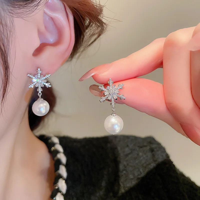 Exquisite Pearl Moon Asymmetric Water Drop Earrings For Women Korean Fashion Butterfly Flower Zircon Earring Wedding Jewelry