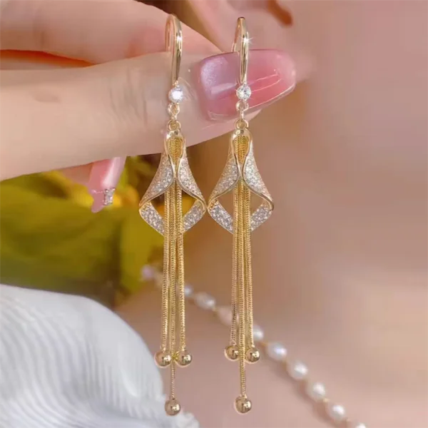 Hot Sale Exquisite Leaves Long Tassel Earrings for Women Full Rhinestone AAA Zircon Dangle Earring Party Wedding Jewelry Gifts