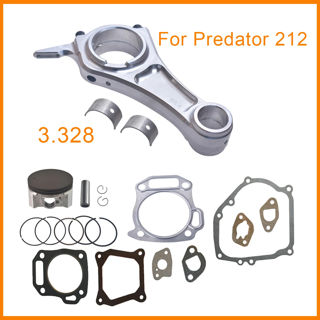 70mm Coated Piston w/ 3.328"+.020 Connecting Rod w/ Spacer Silver Kit For Predator 212 Go Kart