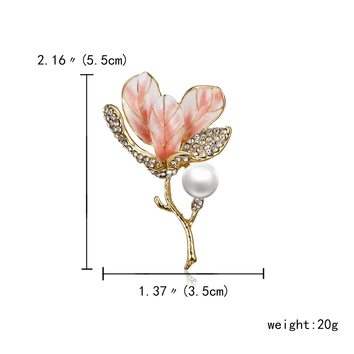 Rinhoo Luxury Pink Blue Purple Enamel Peach Flower Brooch For Women Elegant Peach Blossom Floral Pin Bouquet Plant Badge Jewelry