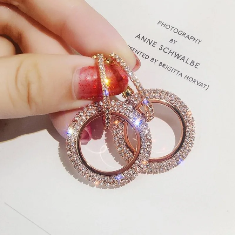 Luxury Exquisite Micro Pave Crystal Round Drop Earring For Women Girls Statement Earring Jewelry 2021 New Design