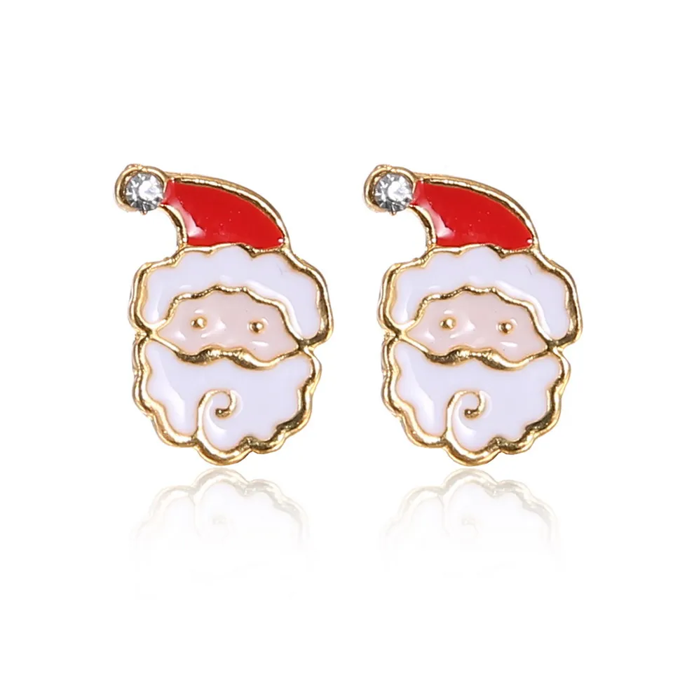 Fashion Cute Christmas Earrings Delicate Crystal Oil Painting Stud Earring Jewelry For Women Girls New Year Party