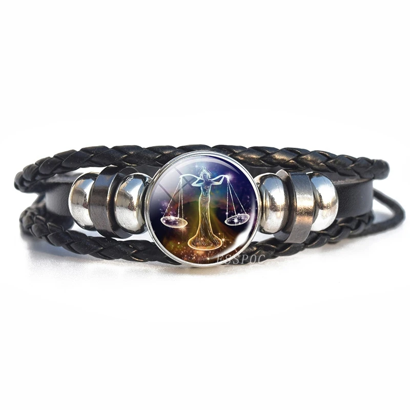 12 Zodiac Signs Luminous Bracelet For Women Men Handmade Adjustable Weaving Leather Chain Bracelet Fashion Jewelry Gift
