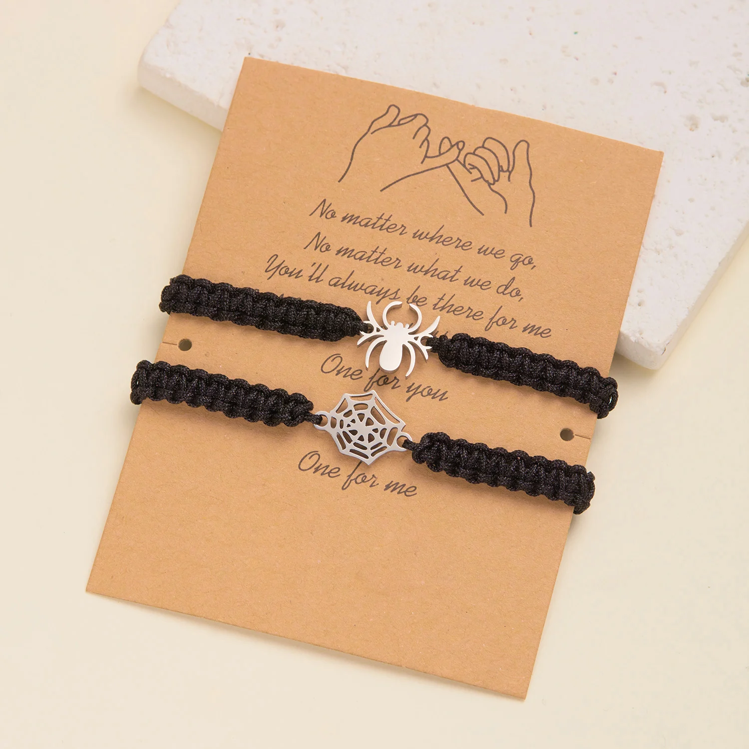 2Pcs/Set Gothic Spider Bat Braided Rope Bracelet For Women Men Heart Magnetic Matching Couple Bracelets Halloween Jewelry Gift