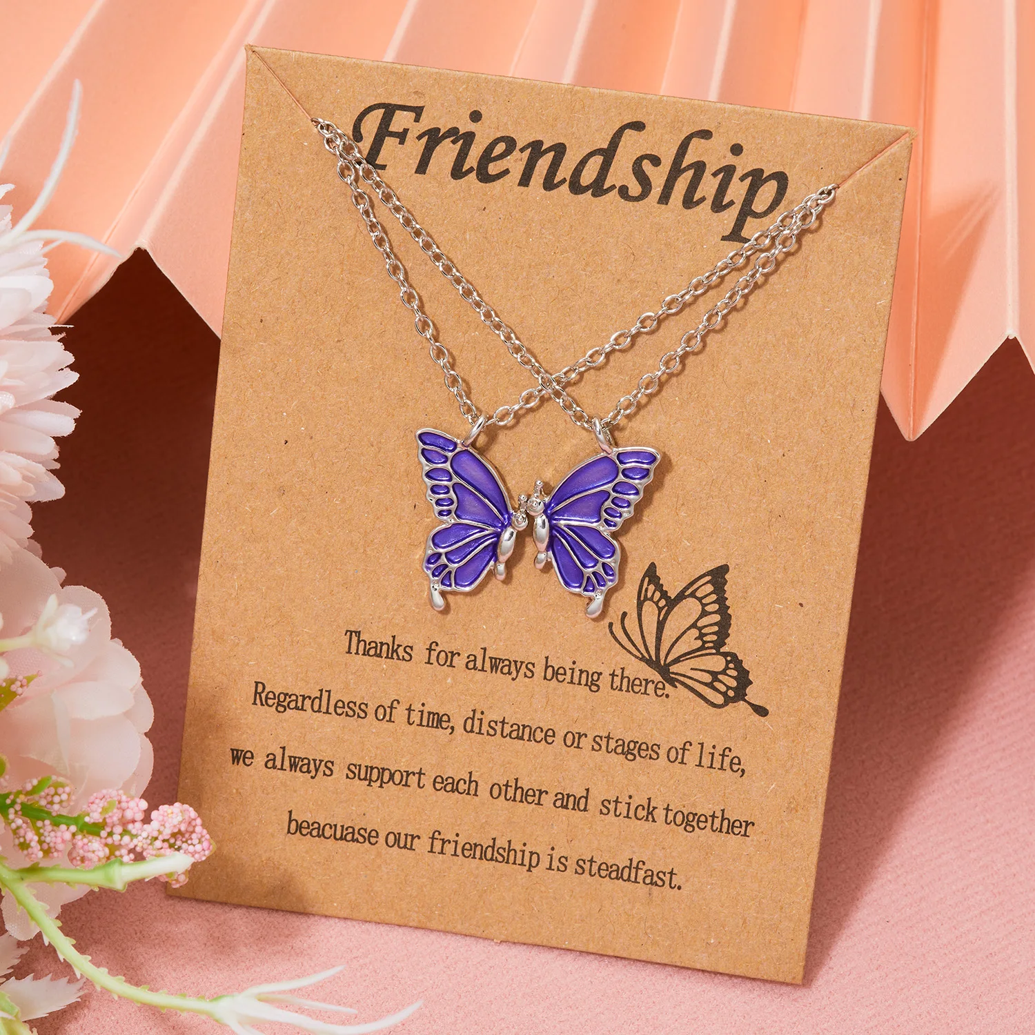 2pcs/set Friendship Fashion Women Butterfly Necklace Female Exquisite Clavicle Chain Necklace For Women Girls Party Jewelry Gift