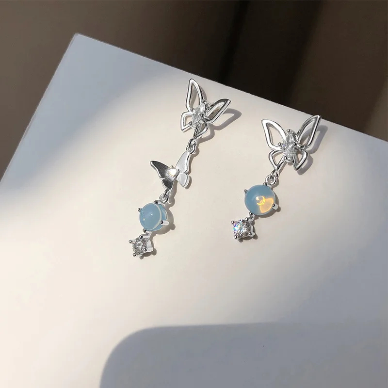 New Trendy Green Zircon Butterfly Earrings for Women Light Luxury Sweet Long Tassel Earrings Aesthetics Wedding Party Jewelry