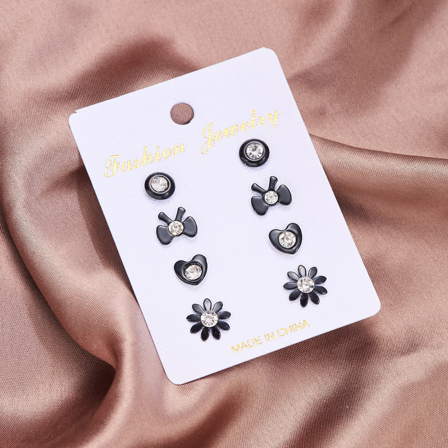 Fashion Heart Star Flower Stud Earrings Set for Women Pearl Zircon Bowknot Infinite Piercing Jewelry Wedding Party Classic Gifts