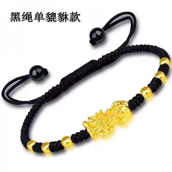Handmade Braided Lucky Red Black Rope Gold Color Pixiu Bracelets for Lover Buddhist Luck Knots Wristband Health Bracelet Jewelry