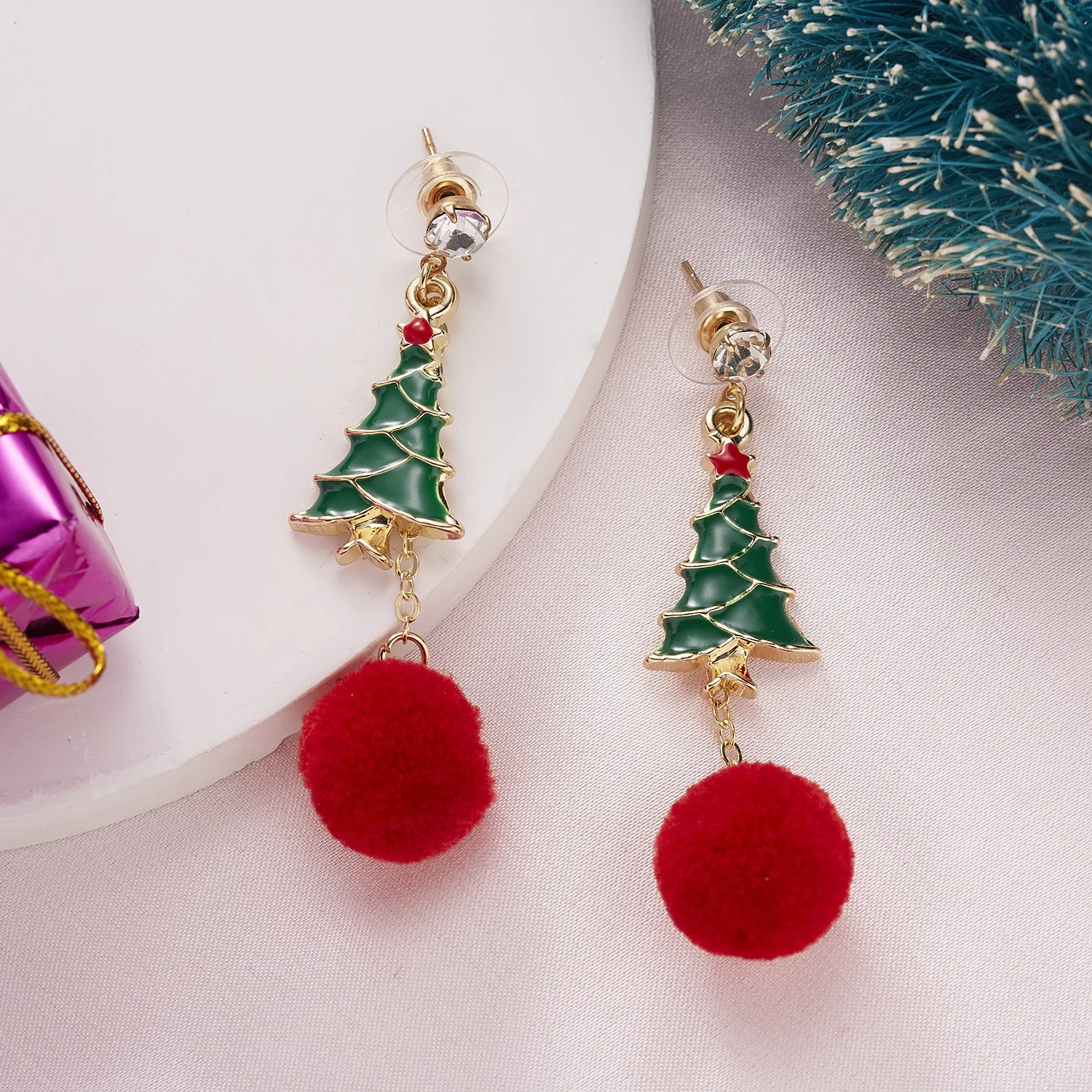 New Trendy Shiny Zircon Christmas Tree Drop Earrings For Women Elegant Snowflake Xmas Tree Versatile Earrings New Year Jewelry