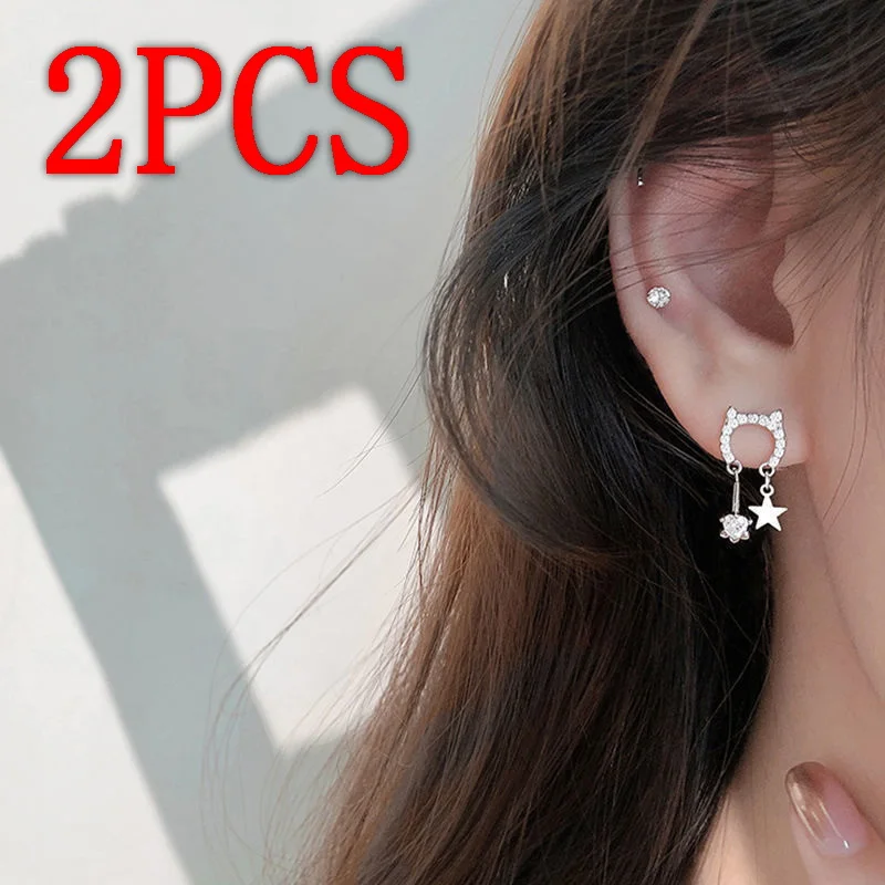 Fashion Cute Animal Kitten Leaf Dangle Earrings For Women Cat Rabbit Moon Flowers Asymmetrical Sweet Earring Girl Party Jewelry