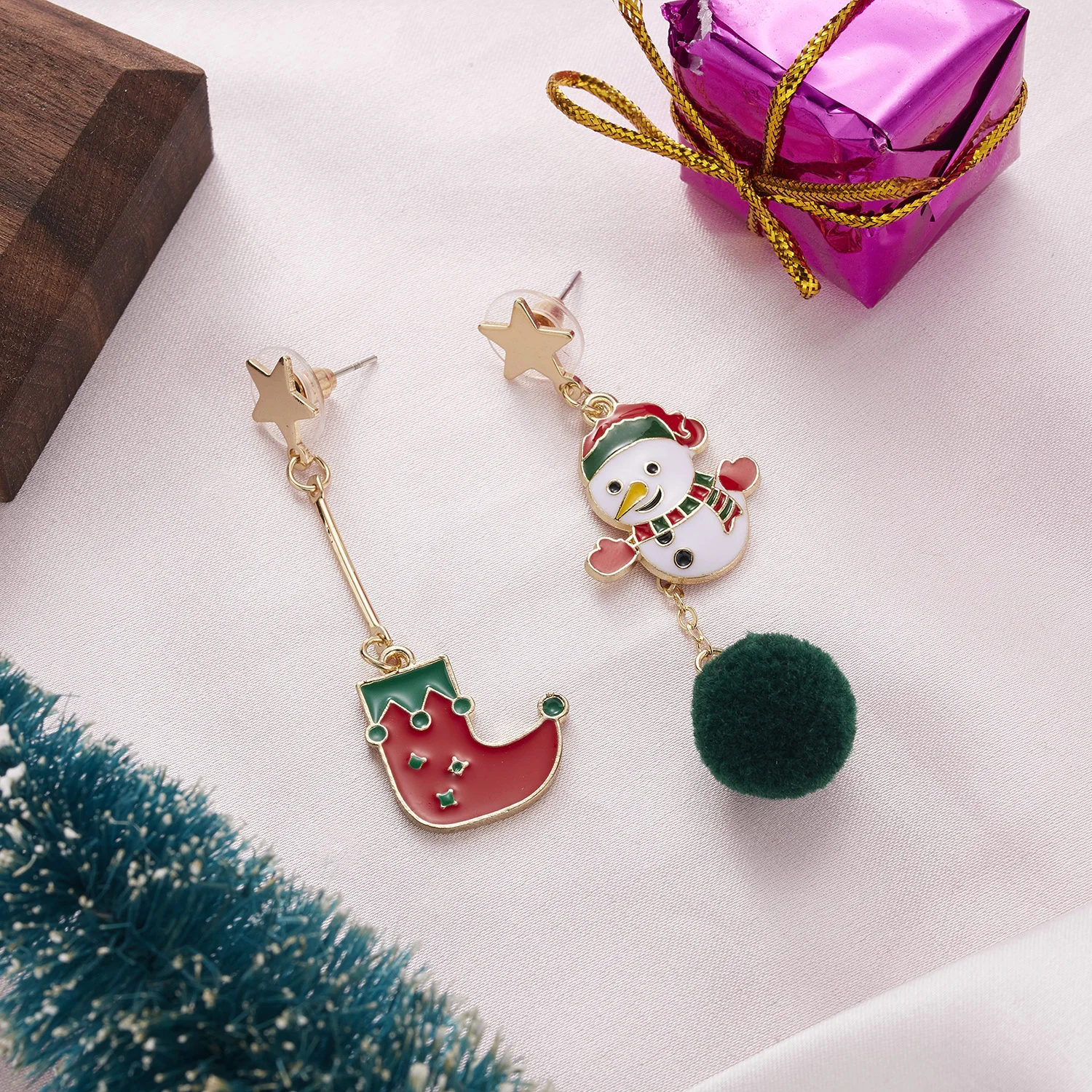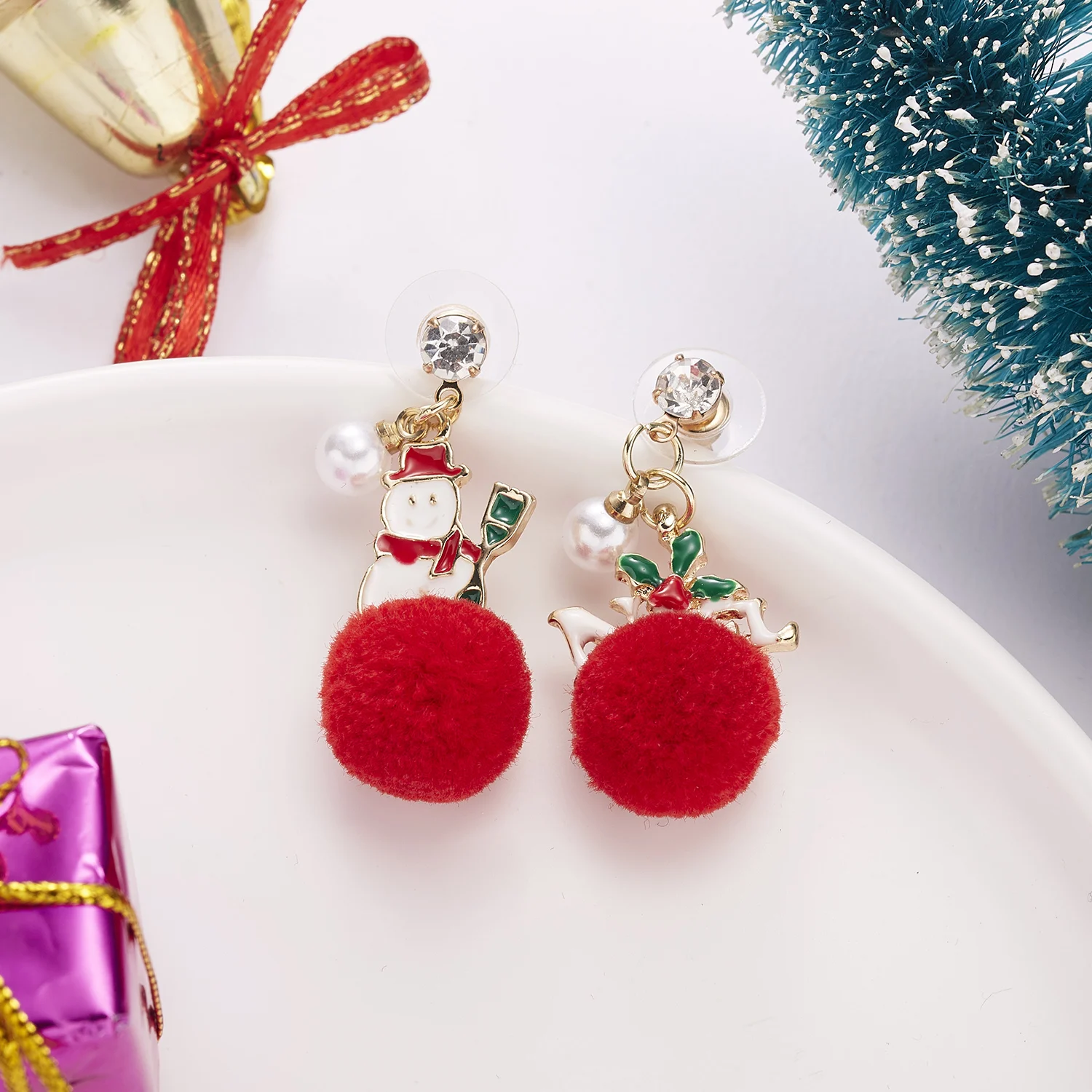 2021 New Fashion Christmas Earring Asymmetric Cute Little Bear Jewelry Red Plush Ball Drop Earrings For Women Xmas Party Gift