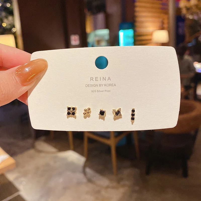 Exquisite Geometric Zircon Crystal Stud Earring Set For Woman Girls Butterfly Pearl Earring Simple Fashion Jewelry Daily Wearing